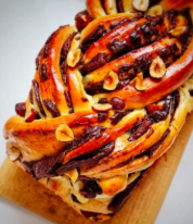 Apprenez à réaliser une brioche moelleuse et parfumée à la noisettes, avec une texture filante et légère. Vous maîtriserez la technique du tressage et du roulage pour un résultat visuellement spectaculaire, avant de garnir la pâte d’une crème de noisette maison pour un goût unique.
